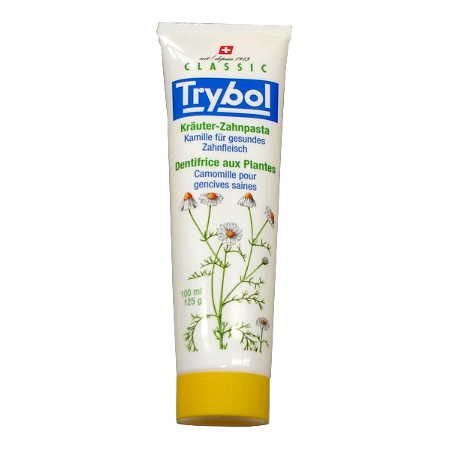 Beschreibung TRYBOL Kräuter-Zahnpasta Classic mit ECO-zertifiziertem Siliciumdioxid reinigt die Zähne schonend, regeneriert das Zahnfleisch und der Atem bleibt lange frisch.